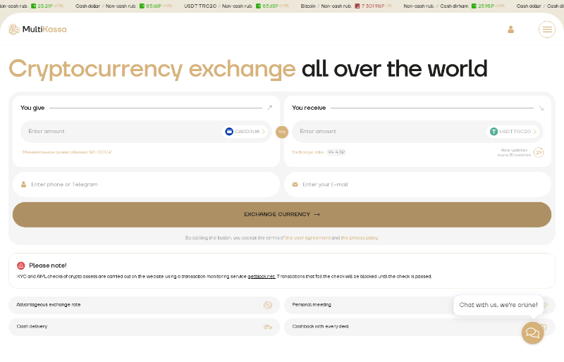 Описание: Простой и удобный сервис для быстрого обмена валют. cashaed, cardrub, cashusd, usdttrc20, cashrub, btc, sberrub, tcsbrub, sbprub, usdterc20, usdtbep20, eth, ton, ltc, trx, wireusd