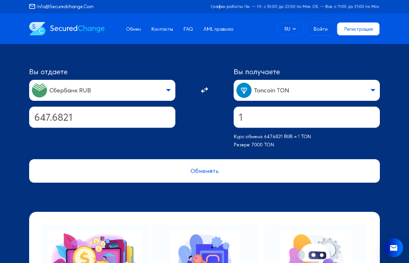 Описание: Сервис для быстрого и выгодного обмена валют. usdttrc20, sberrub, btc, tcsbrub, cashrub, rfbrub, sbprub, eth, ton, kspbkzt, sol, shiberc20, usdtsol, ltc, usdcerc20, doge, xrp, bnbbep20, usdterc20, usdtbep20, avax, ethbep20, acrub, tbrub, alpcny