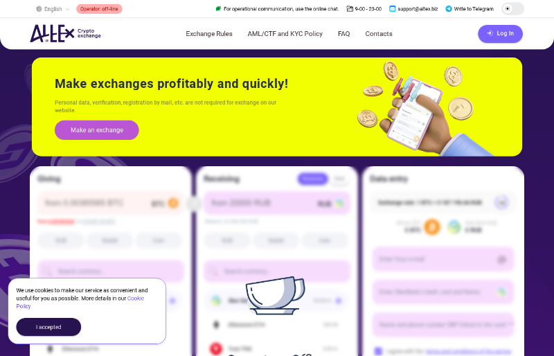 Описание: Сервис для быстрого и выгодного обмена валют. usdttrc20, btc, xmr, trx, doge, etc, eth, ltc, ton, usdterc20, usdcerc20, bnbbep20, dai, usdtbep20
