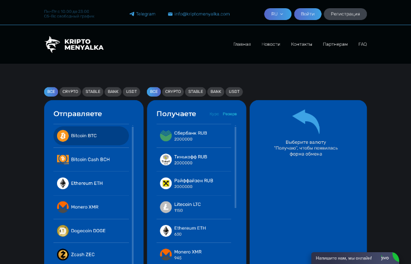 Описание: Сервис для быстрого и выгодного обмена валют. usdttrc20, sberrub, tcsbrub, rfbrub, btc, eth, ltc, xmr, doge, bch, zec, usdtsol, usdterc20, usdtbep20, trx, bnbbep20, usdcerc20, dai, xrp, russtrub, acrub, sbprub, mircrub, cardrub, opnbrub, hcbrub, sol, ton, dash, advcusd, advcrub, postbrub, rosbrub, rshbrub, rnkbrub, advceur, usdctrc20, usdcbep20, trump, wirerub, tcsbqrub, sberqrub, yamrub, uni, avax, mngusd, alpcny, kspbkzt, mwrub, cashrub