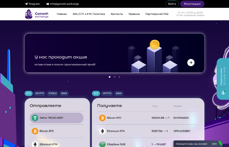 Описание: Сервис для быстрого и выгодного обмена валют. xmr, sberrub, tcsbrub, usdttrc20, btc, eth, cardrub, sbprub, ethbep20, ltc, usdtbep20, acrub, gpbrub, mircrub, opnbrub, postbrub, psbrub, rfbrub, rosbrub, rshbrub, russtrub, usdterc20, ton, usdcerc20, doge, sol, usdcbep20