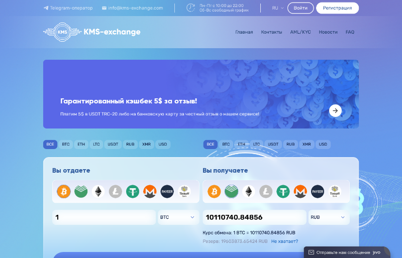 У обменника много плюсов - это и выбор валюты, и скорость обработки заявки. Мне потребовалось 5 минут, чтобы дождаться перевода на карту ID 1870. Радует, что можно менять небольшие суммы, нет высокого лимита Julia M. b***********s@gmail.com
